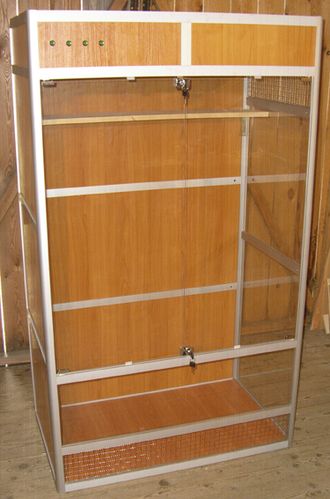 Кроме этого, Вы всегда можете заказать изготовление аналогичного террариума по другим размерам, другого цвета, выбрав его по фотографиям декоров из имеющихся в наличии и в другой комплектации - например, с установкой сетки с другой стороны, с сетками с двух сторон, изменить количество и вид полок и т.д.