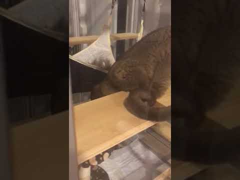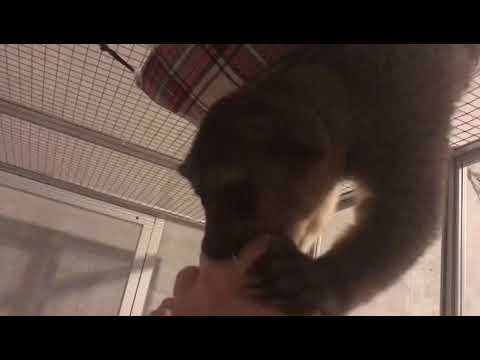 Два одинаковых вольера для лемуров. Высота с ножками - 220 см, ширина - 150 см, глубина - 100 см. Высота ножек вольера - 20 см. Сетка на потолке и на одной из боковых сторон. Материал сетки - нержавеющая сталь. Полки - мебельный щит. Материал дна - сотовый поликарбонат 8 мм молочного цвета. Вольеры отличаются зеркальным расположением сетчатых дверок и дверок из стекла. У одного вольера на сетчатой двери установлена маленькая дверка.